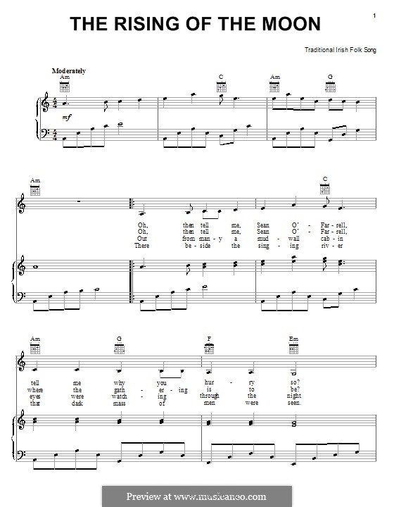 Sheet music midi score info. With a driving celtic beat, fiddle and tambourine, the rising of the moon tells the story of sean o'farrell who is gathering up the troops for battle. Piano sheet is arranged for piano and available in easy and advanced versions.