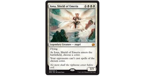 抽象 動物・野生生物 芸術 背景・テクスチャ 美容・ファッション 建物・都市 ビジネス・金融 有名人 エディトリアル 教育 食べ物・飲み物 ヘルスケア・医療 祝祭日・. Iona, shield of emeria / エメリアの盾、イオナ (6)(白)(白)(白) 伝説のクリーチャー — 天使(angel). Flying as iona, shield of emeria enters the battlefield, choose a color. Your opponents can't cast spells of the chosen color.