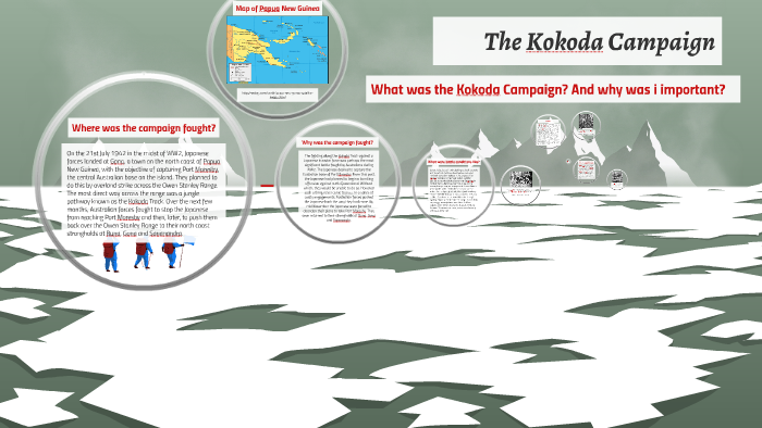 The track starts, or ends, at owers corner in central province, 50 kilometres east of port moresby, and then crosses rugged and isolated. An overview of the 1942 kokoda campaign in new guinea during world war 2 aimed at year 10 history students in australia. Kokoda is a station town in the oro province of papua new guinea.