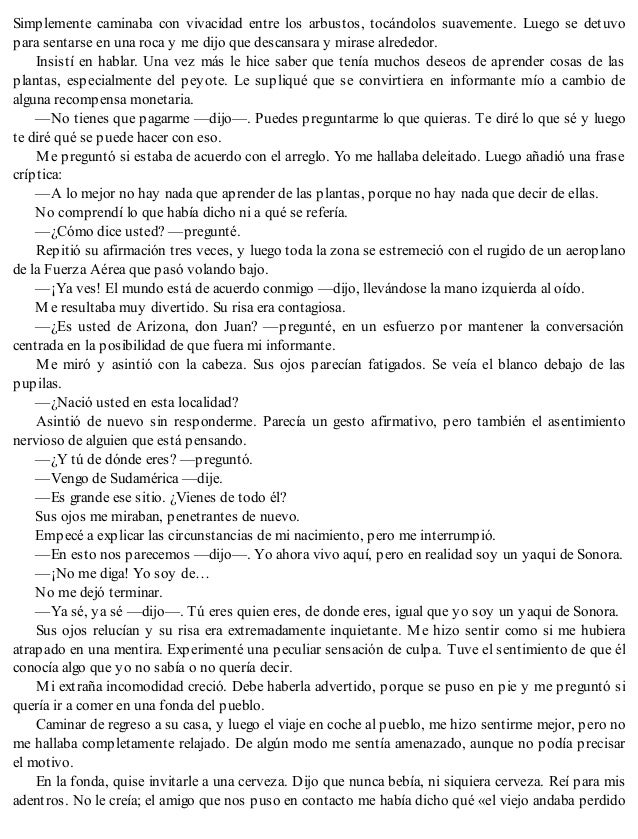 Viaje a ixtlan yo ya había leído el primer libro el de las enseñanzas, sin duda este libro de castaneda es un complemento para entender lo que castaneda quiere transmitirnos. Nuevas conversaciones con don juan (spanish edition) by castaneda carlos paperback $19.41. Parrafo extraido del libro viaje a ixtlan de carlos castaneda. Fear don juan and castaneda were chased by a mountain lion got you into the mood of a warrior, but now that you know about it, anything can serve on remorse: